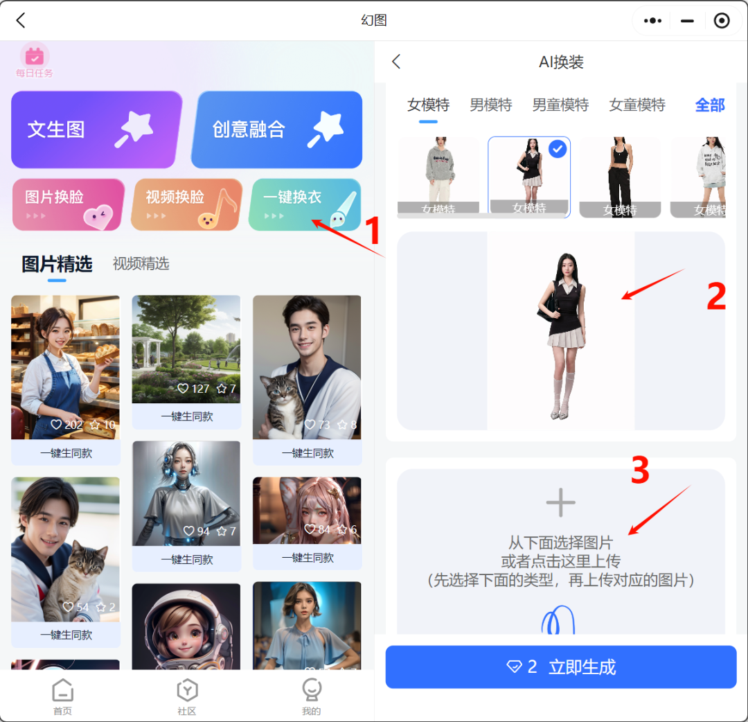 使用幻图AI提供的一键生成,完全不用纠结那些复杂流程。看看下面的GIF,几秒钟就搞定。