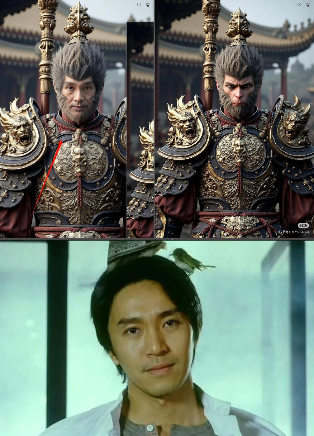 它的具体操作是:点击幻图AI的‘图片换脸’功能,在第二步选择‘黑猴’形象,第三步选择造型动作,第四步上传你的人脸图片,最后“下一步”开始生成。