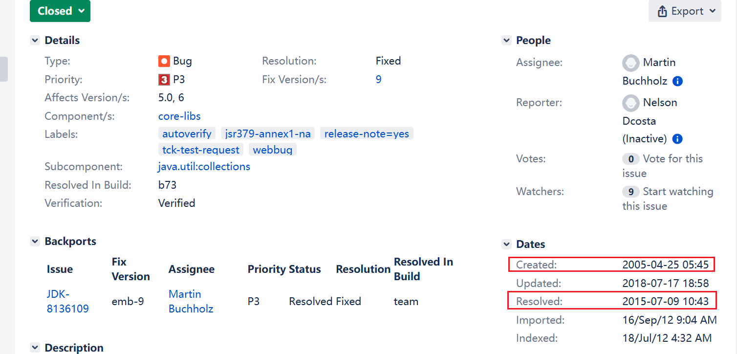 在 OpenJDK 的 BugList 官网上很早就有人提出这个问题了,从时间上看至少在 2005 年就已经发现这个 Bug 了,这个 Bug 真正被解决是在 2015 年的时候,整整隔了 10 年时间。花了 10 年时间修这个 Bug,真是十年磨一剑啊!