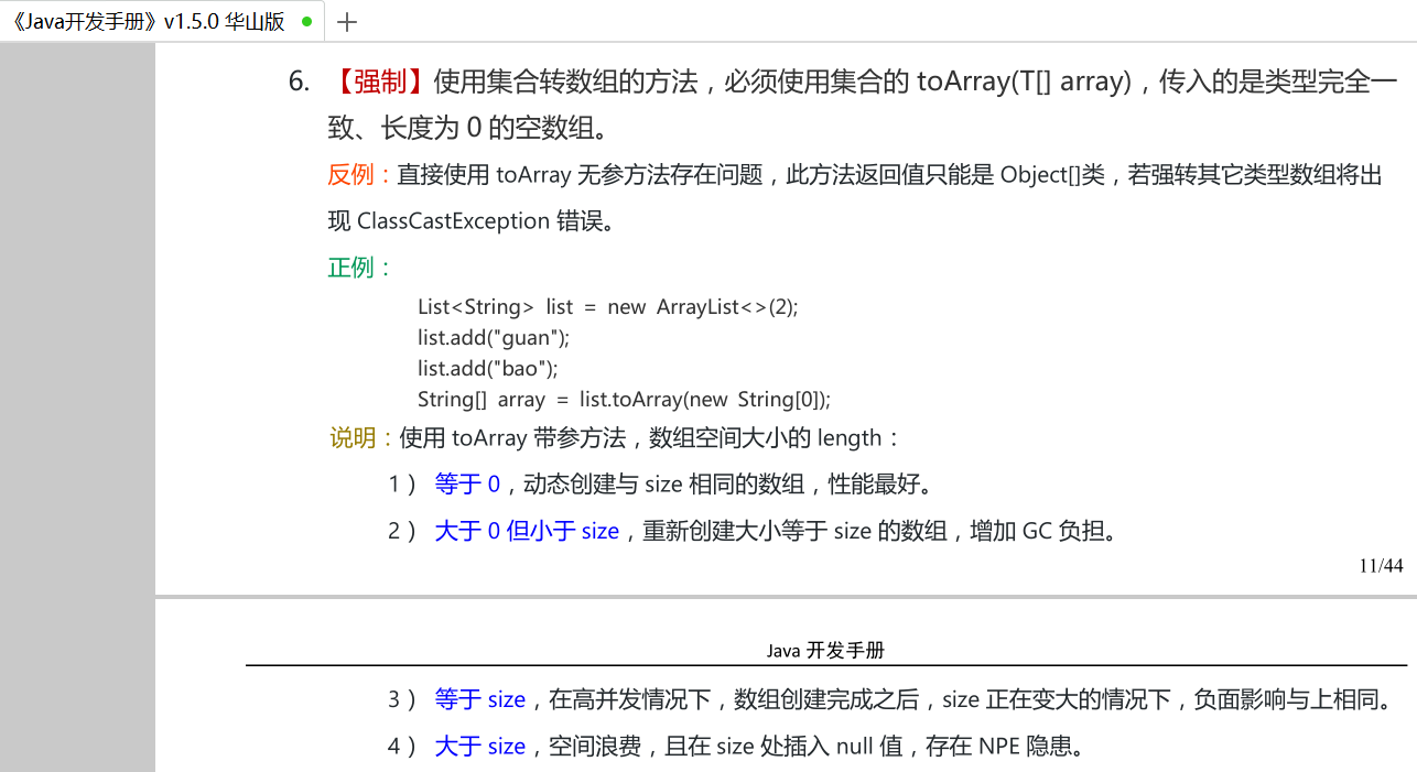 阿里巴巴的 Java开发手册对 toArray(T[] array) 方法的调用有如下的建议: