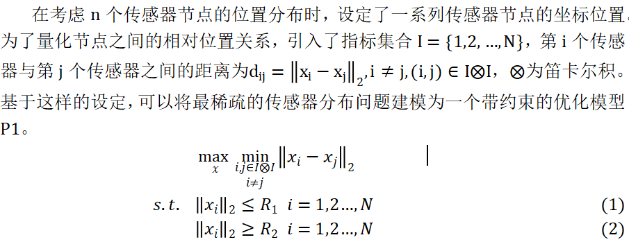 具体地说,该模型的目标是实现传感器之间的最大间距,同时满足特定的约束条件,以确保整个网络的有效性和稳定性。