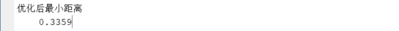 由圆环区域内传感器节点位置优化后MATLAB输出结果图可知,优化后的传感器最小距离为0.3359。