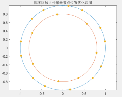 图3 圆环区域内传感器节点位置优化后MATLAB输出结果图