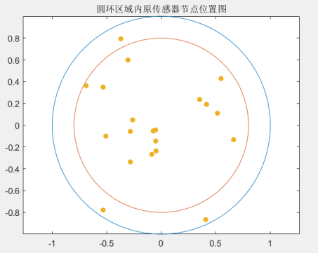 图5 圆环区域内传感器节点位置优化后MATLAB输出结果图