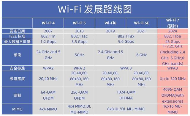 WiFi 的高度普及,具有极大的商业价值,新标准推出的时间也越来越快。目前还在 WiFi 6 的推广阶段,2022 年 1 月 WiFi 联盟就已经宣布了 Wi-Fi 6 的第 2 版标准,它改进了上行链路以及所有支持频段( 2.4GHz、5GHz 和 6GHz )的电源管理。甚至在 WiFi 7 标准尚未统一时,联发科就进行了首个 WiFi 7 技术的现场演示。