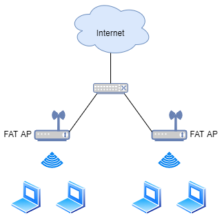 能够自行进行无线控制和安全管理功能的 AP 叫做胖 AP 。通过一台或多台 AP 搭建无线网络时,常使用胖 AP ,配置简单,费用低廉。有多台 AP 的网络环境中,如果想修改安全策略等参数时,就需要一台一台的配置。