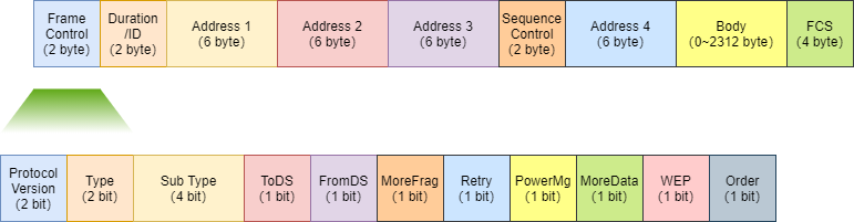 通常数据帧的 Address 1 表示目的地址,Address 2 表示源地址,Address 3 表示 BSSID 信息。