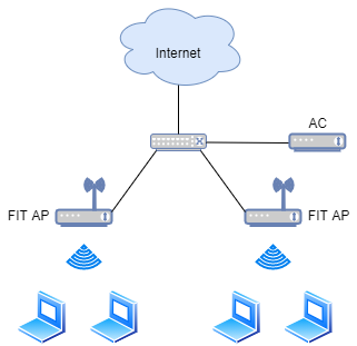 在大规模办公区部署无线网络时,需要管理的 AP 数量非常庞大,不适合单台 AP 单独管理。这种情况下,AP 只保留最基本的配置,安全策略等参数就通过无线控制器进行统一配置和管理,这类 AP 就叫做瘦 AP 。