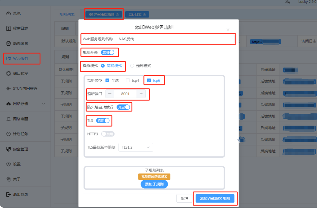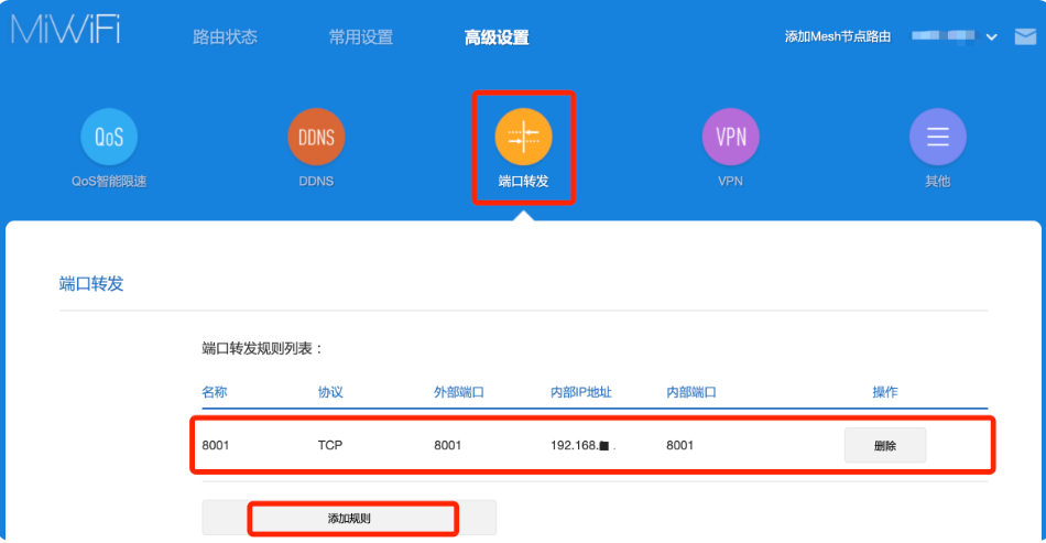 反代设置完成之后,最后一步还需要去路由器把8001端口做一下映射。