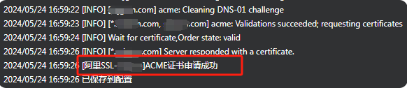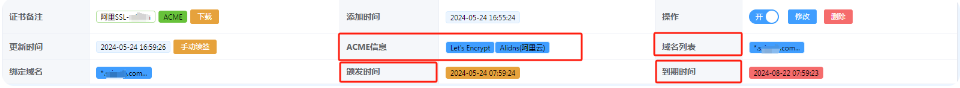 稍等一会就会显示证书,显示绑定域名、颁发时间和到期时间就表示申请SSL成功
