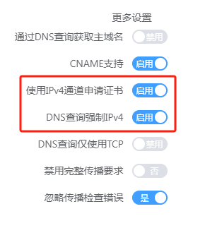 5、这里我的是 IPv6 所以我这更多设置勾选 CNAME支持