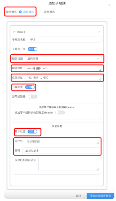 ③前端域名:设置一个好记的二级域名,我用来访问NSA。比如:alist.aliluya.com;博客:blog.aliluya.com