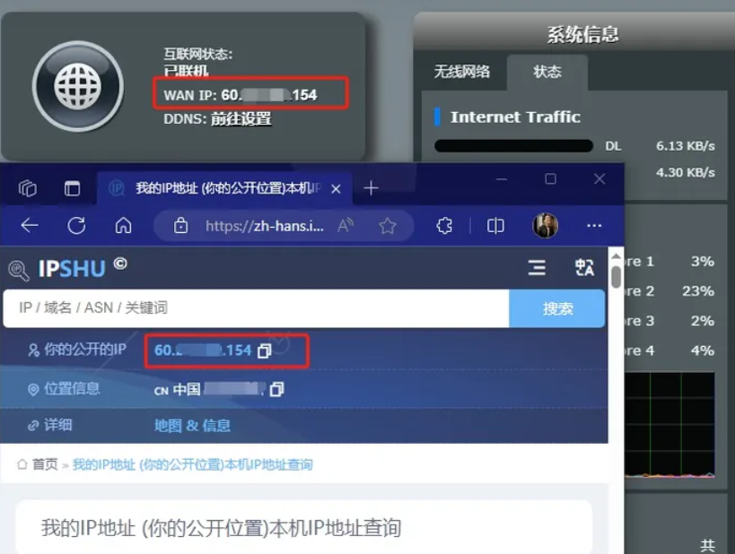 先把光猫改了桥接,可以用笔记本查询的NAS IP和主路由的WAN IP是否一致,一致说明有公网。