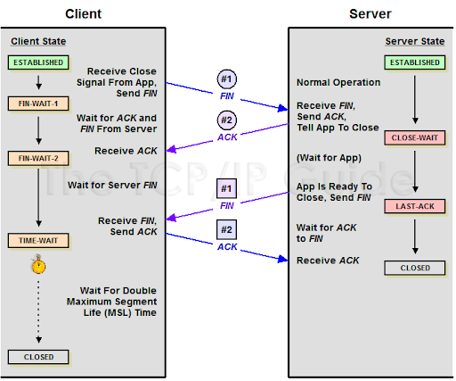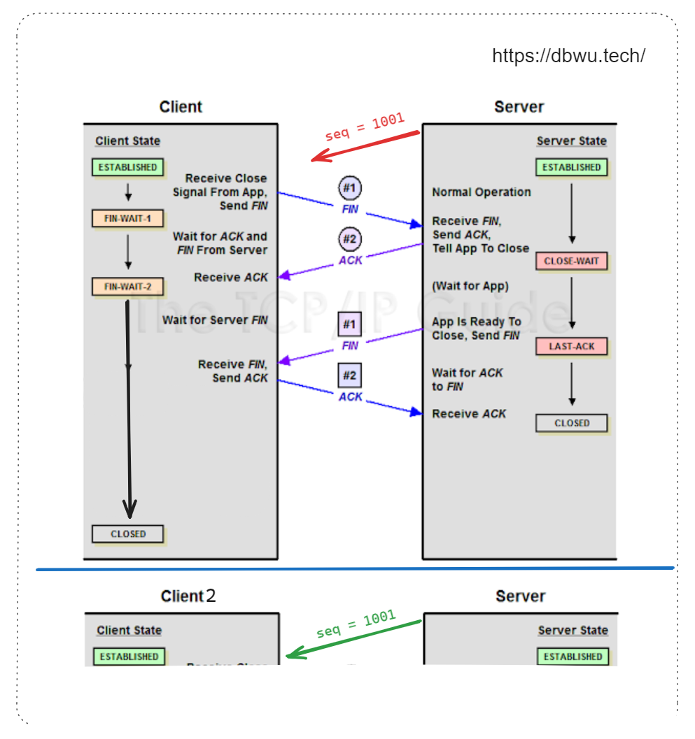 这里以客户端主动关闭连接为例,先来看下经典的 “四次挥手” 过程: