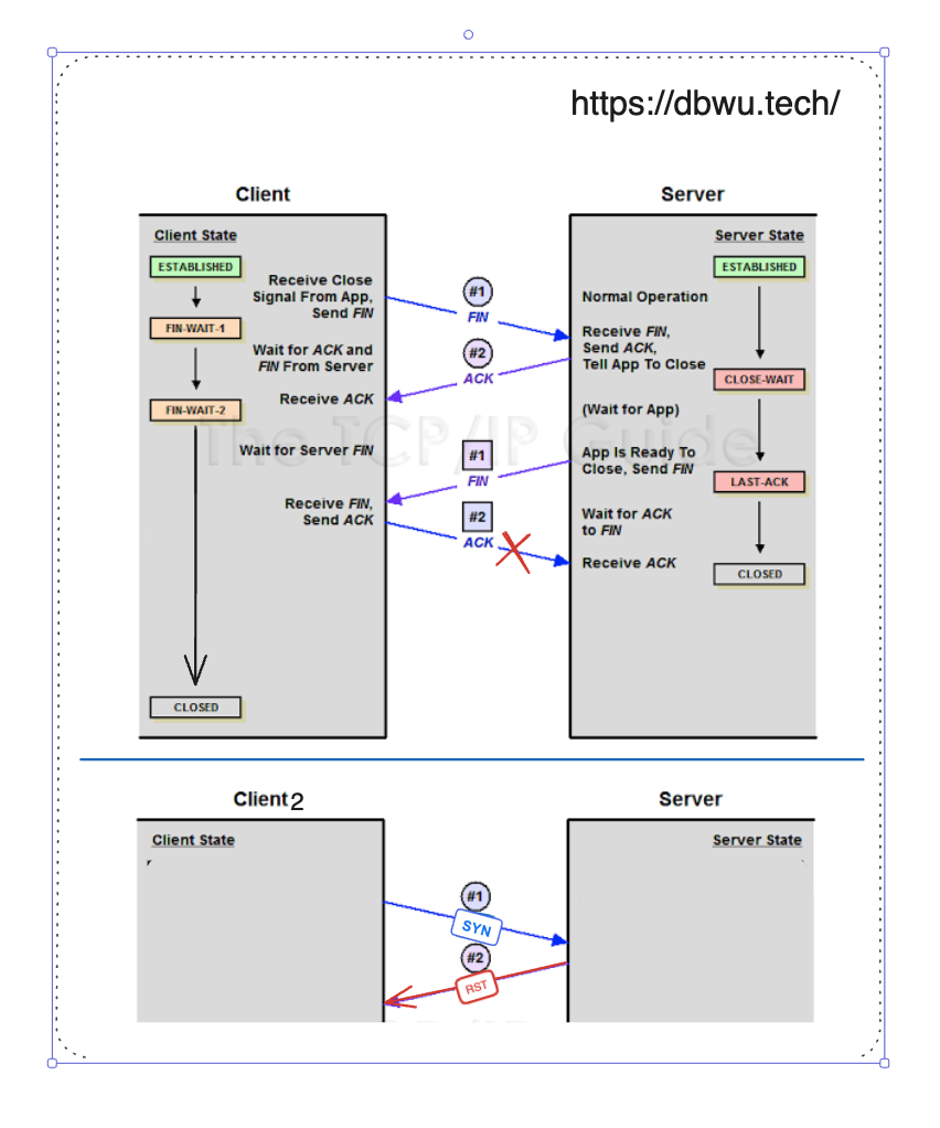 FIN 消息,客户端进入 FIN_WAIT_1 状态FIN 消息之后,进入 CLOSE_WAIT 状态,然后向客户端发送 ACK 消息,客户端收到 ACK 消息之后进入 FIN_WAIT_2 状态FIN 消息,然后服务端进入 LAST_ACK 状态FIN 消息之后,进入 TIME_WAIT 状态,然后向服务端发送 ACK 消息,服务端收到 ACK 消息进入 CLOSED 状态CLOSED 状态客户端需要维护一个 TIME_WAIT 状态长达 2 个 MSL 时间,以 Linux 5.0 代码为例,也就是 2 分钟。