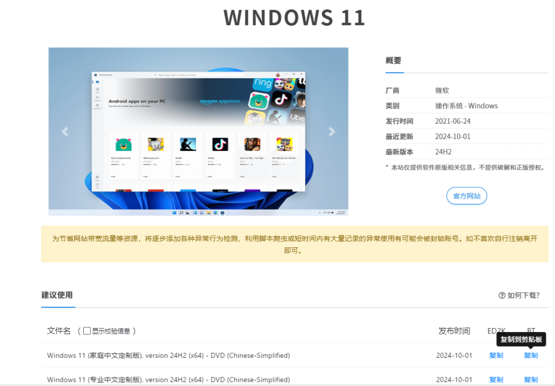 网站会持续更新,目前最新的开发测试版已经有WIN11的BT文件等供下载,可通过链接注册去登录查看资源,获取所需!https://next.itellyou.cn