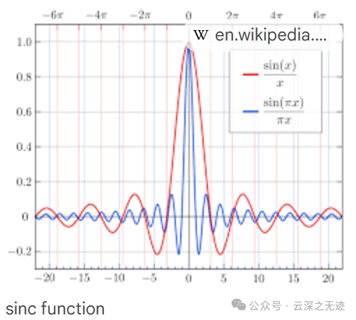 而原连续时间信号x(t)可以用一系列的sinc函数的线性组合来表示,这就是著名的采样定理的数学表达形式。