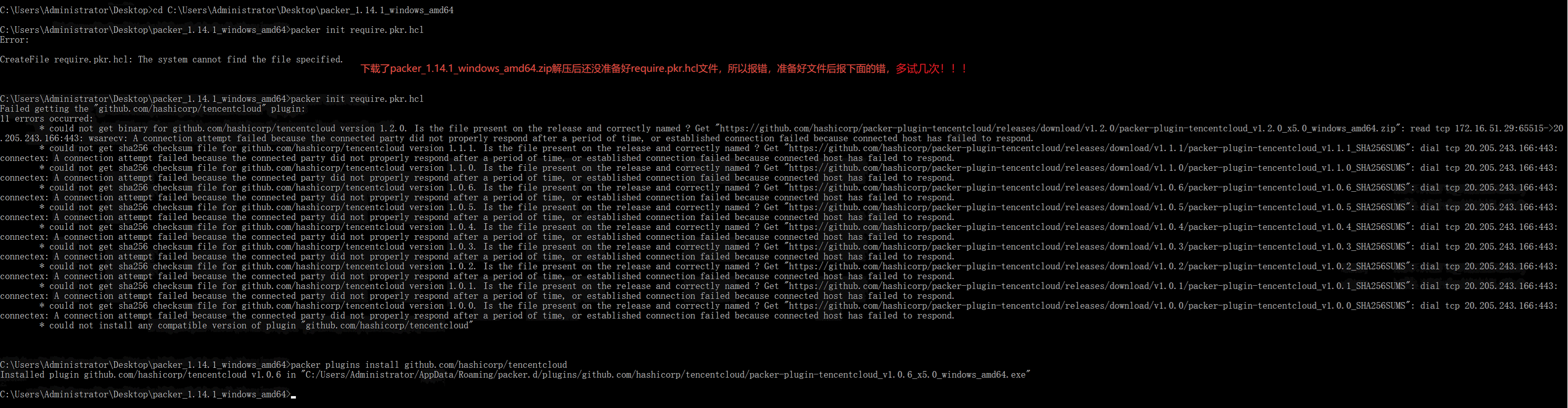 报错如下图的时候,多执行几次,不论是packer init require.pkr.hcl