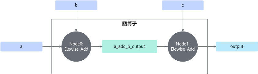 graphOpBuilder->Init("DemoGraphOperation", inferShapeFunc, {"a", "b", "c"}, {"output"});第三步:用图算子构造器构图