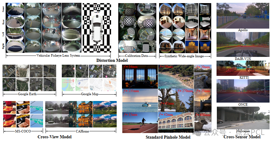 - 拓展研究范围,在传统参数(如焦距、旋转、平移)的基础上,还涵盖了图像失真校正(径向畸变、滚动快门畸变)、跨视角映射估计、相机与LiDAR联合标定等扩展应用。