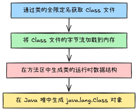 java.lang.Class 对象,作为方法区中这个类的各种数据的访问入口。加载是类加载的第一步,JVM 需要完成以下任务: