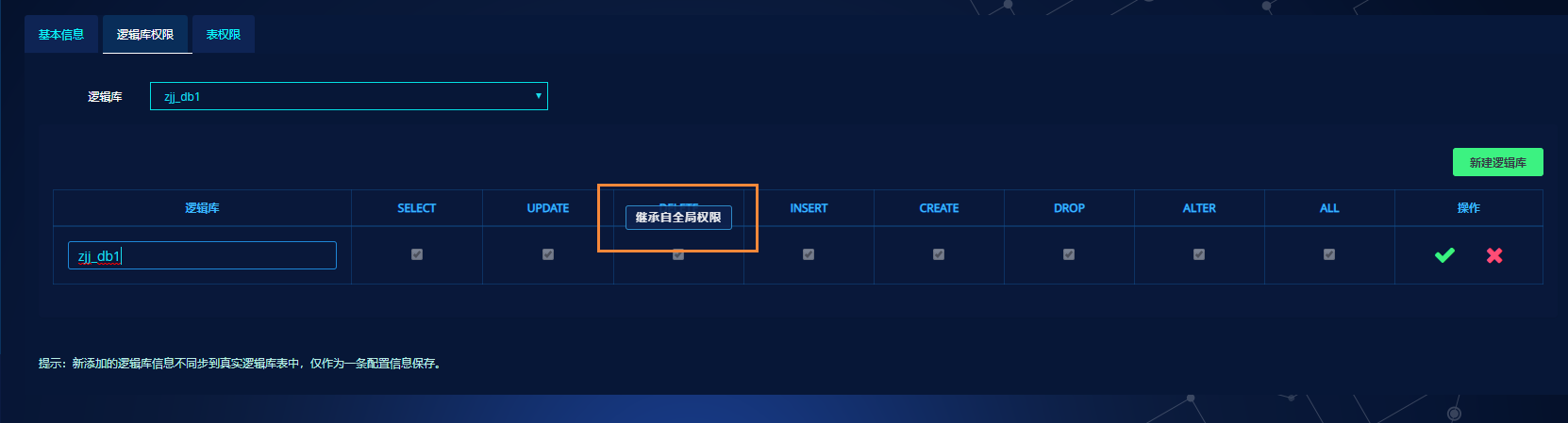 (二)逻辑库权限: 选择对应逻辑库设置相应权限,或者新建逻辑库并赋予权限。