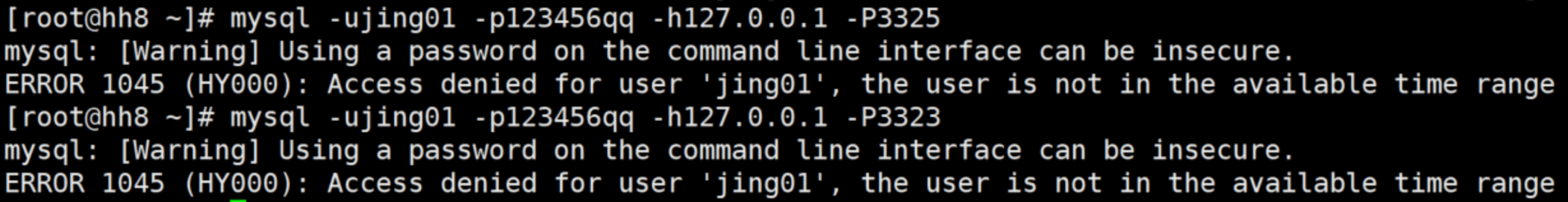 ERROR 1045 (HY000): [DELETE] command refused to user 'test' to table 'TEST_TEMP' of logic database 'TEST_CT'
