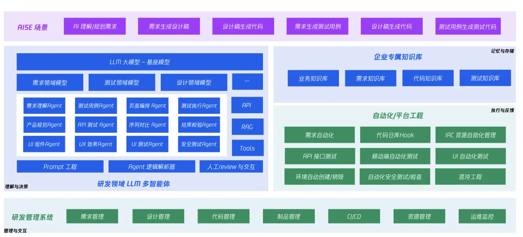 DevOps 或者 AISE 是面向完成软件工程的视角,通过不同 Extension 的编排衔接各个环节,DevOps 是针对软件研发下端到端全过程的落地,整个过程中进行了不同领域的划分包含:项目管理域、代码域、持续集成域、测试管理域、持续部署域、持续运营域,不同领域之间环环相扣,可以看到通过 AI Agent 对 DevOps 智能化赋能,每个智能体都是一个领域的排头兵或者是一个领域的聚合,按照独立的专用模型进行向上对专有场景进行流程上的规划与落地,以下是一些关键的应用场景:
