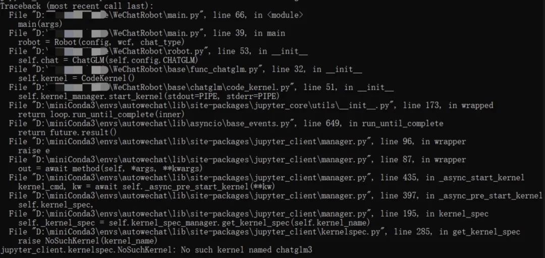 10086 和 10087 的进程杀掉(目前已知 金山毒霸 和一个校园网的客户端使用 10086)。wcferry 的启动端口:wcf = Wcf(port=10010) # 换一个不冲突的端口吧