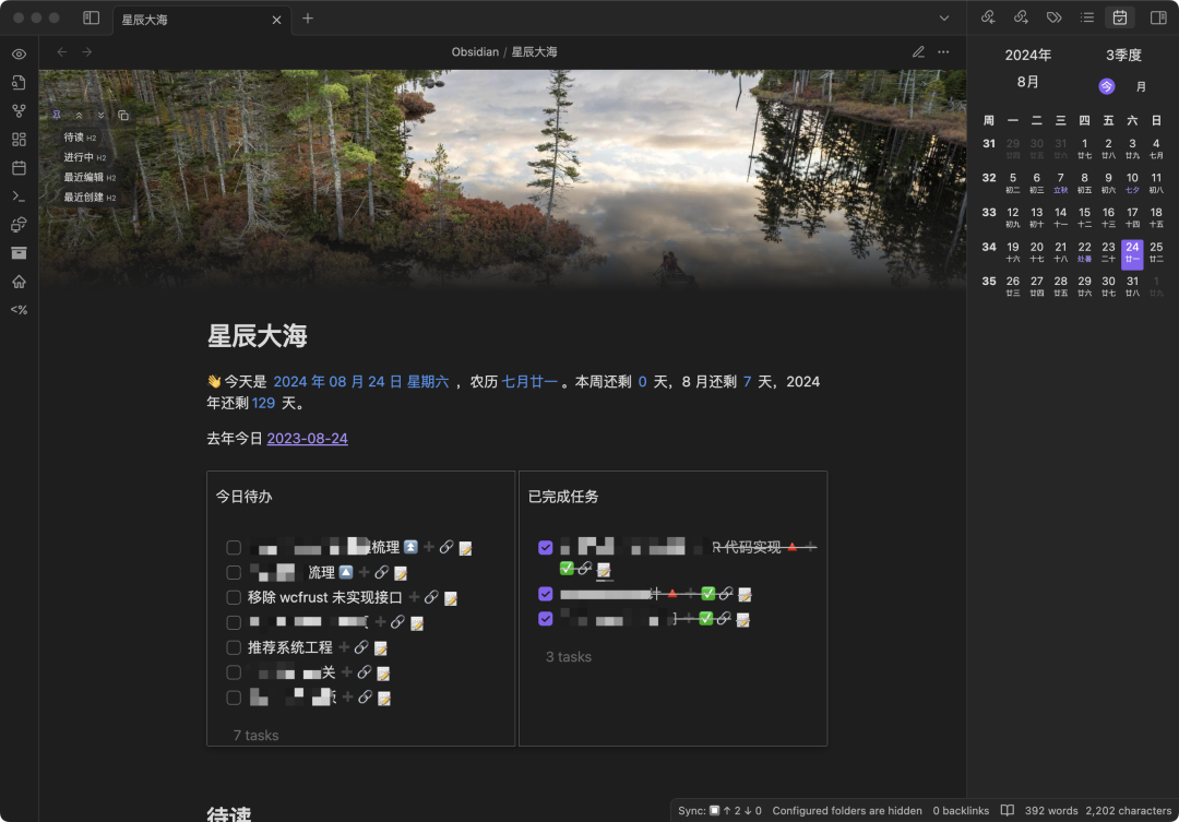 今日待办 和 已完成任务 分栏是通过插件 Multi-Column Markdown 实现的。
