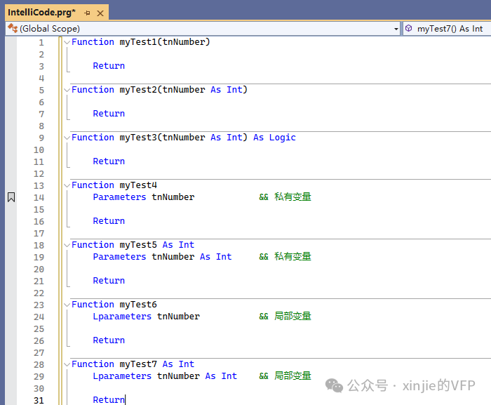 鉴于 X# 是强类型语言,所以,推荐使用 As 关键字指定函数或变量的类型(VFP 虽然是弱类型语言,但是同样支持 As 关键字,如果在 VFP 中养成习惯,那么开发环境的更改所造成的不适应会更弱)。