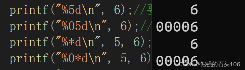 printf("%5d\n", 6);//要求最小输出5位,默认右对齐,用空格填充