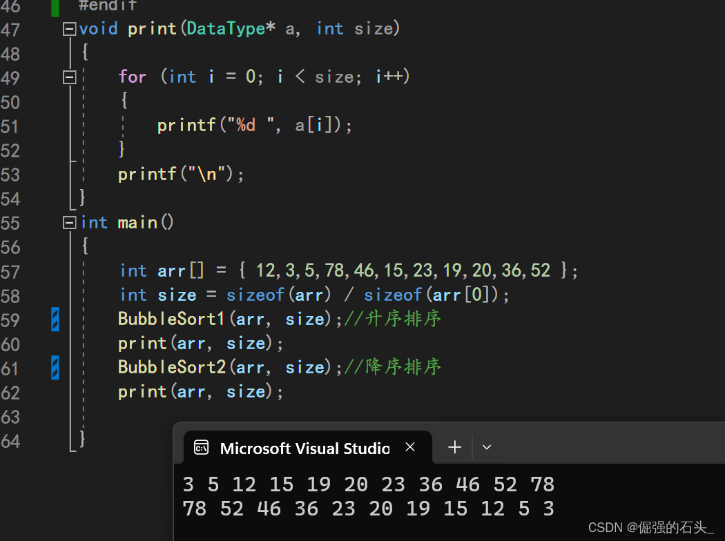 void BubbleSort(DataType* a, int size)//升序排序