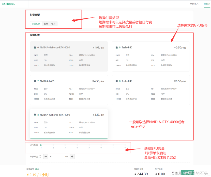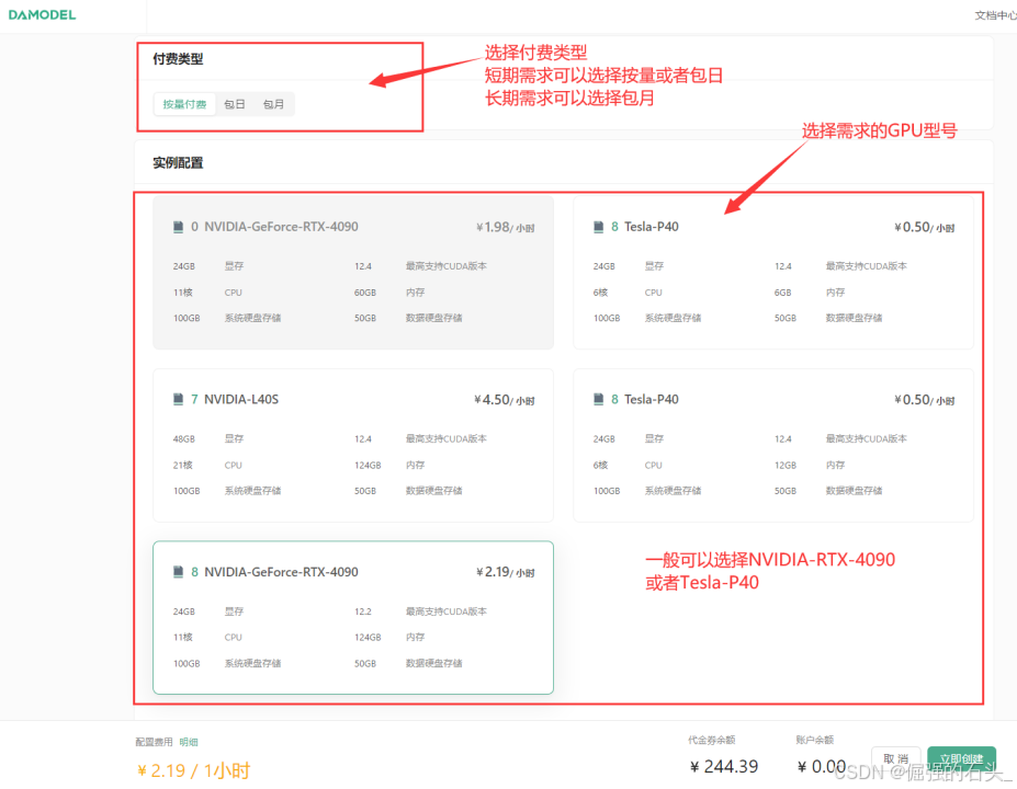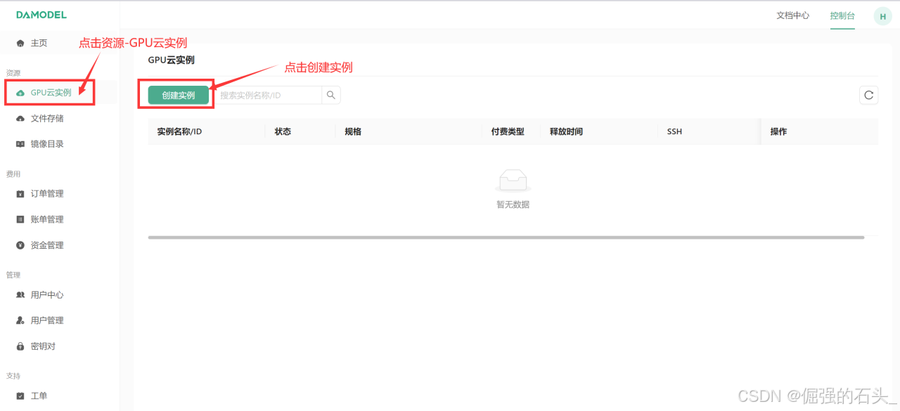 在丹摩智算平台上部署 ChatGLM-6B 的第一步是创建 GPU 云实例。具体步骤如下: