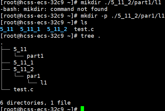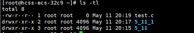 注:带有颜色的文件夹(5_11_1),没有颜色的是普通文件(test.c)。put文件,最前面是-开头,文件夹是d开头。