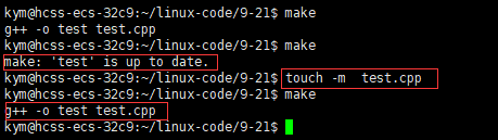 从上面的例子我们就可以看出,在我们更新时间以后,又重新执行了g++ -o test test.cpp