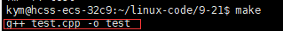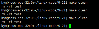 写好这一套以后,我们直接保存退出 ,然后在命令行输入make test,就会根据依赖关系和依赖方法生成test文件。 发生错误时,make会直接退出。make会进行报错。