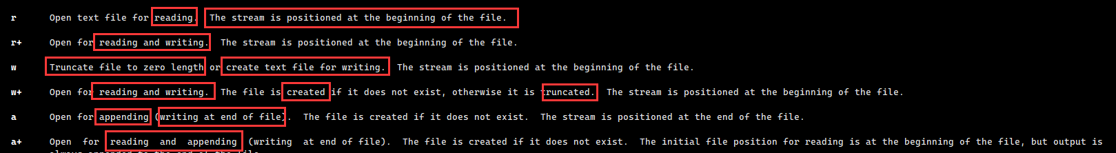 另外还可以增加b,比如wb,ab,rb。有b的,就是对二进制文件进行操作。其他的效果和上面类似,也是读(read),写(write),追加(append)。如果我们使用w方式,如果文件存在,会对文件进行清空(truncate)。