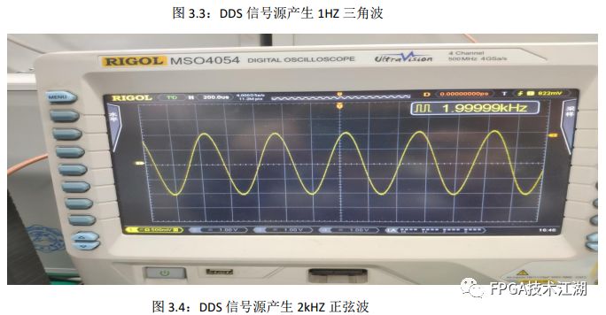 此次设计的 DDS 信号源系统可以无失真稳定产生波形频率范围为 1HZ 至 2MHZ。(频率分辨率为 1HZ),1HZ、2KHZ、1MHZ 的正弦、方波、三角波如下图 所示: