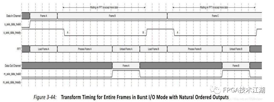 要用好 FFT IP 核还必须了解它的时序图,如下: