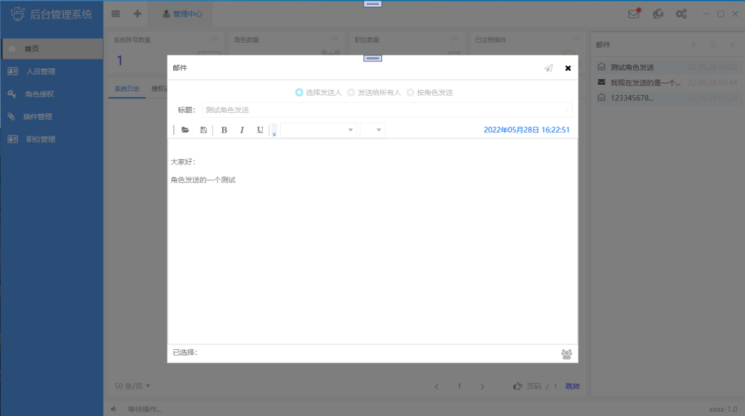 最近发现有不少小伙伴在学习 WPF,今天大姚给大家分享一个使用 WPF 开发的管理系统,该项目包含了用户登录、人员管理、角色授权、插件管理、职位管理、主页功能(邮件、皮肤、设置)等功能,对于一个 WPF 初学者而言是一个值得参考和学习的项目。