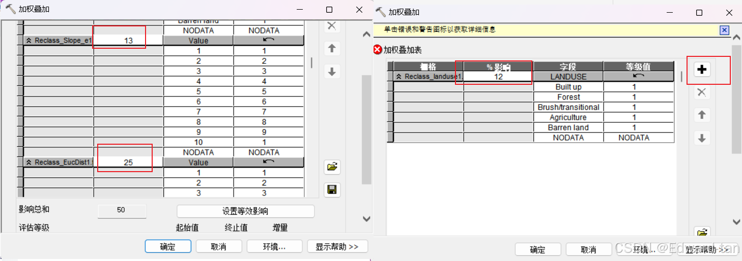 将以上重分类结果进行加权叠加,点击右上方加号。