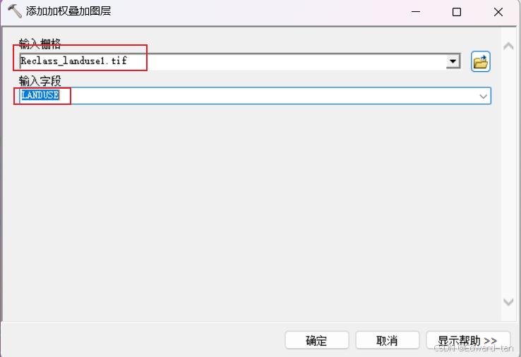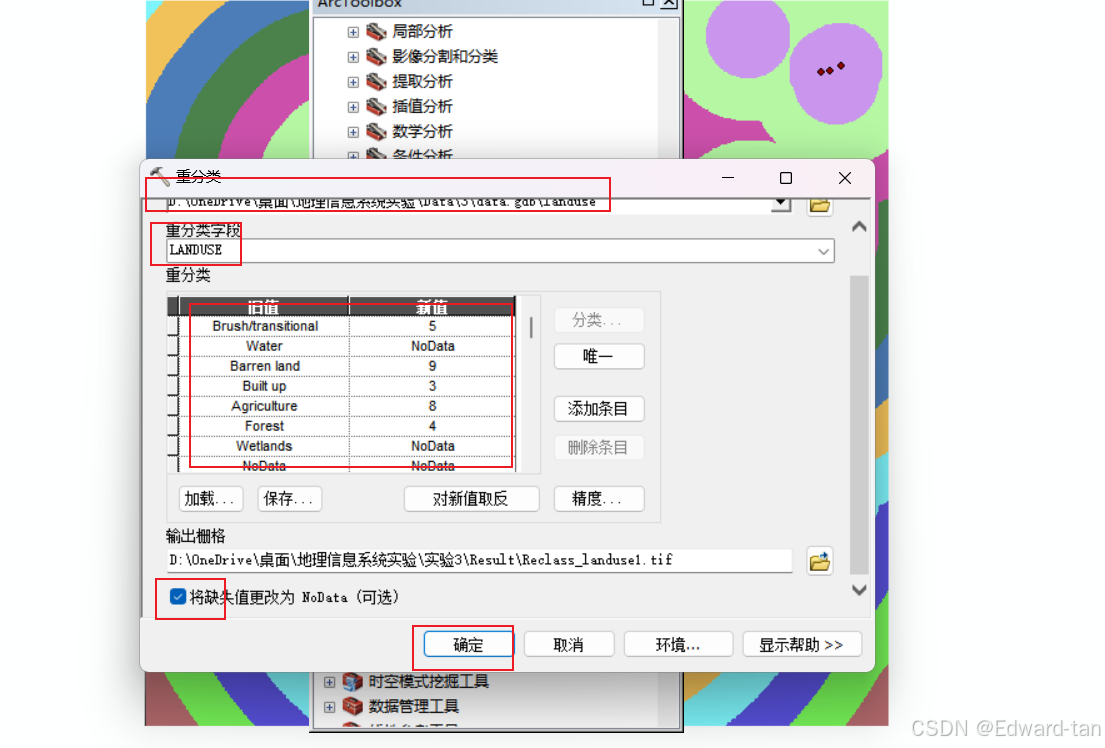 选择土地利用栅格数据,输入重分类字段为"LANDUSE"。