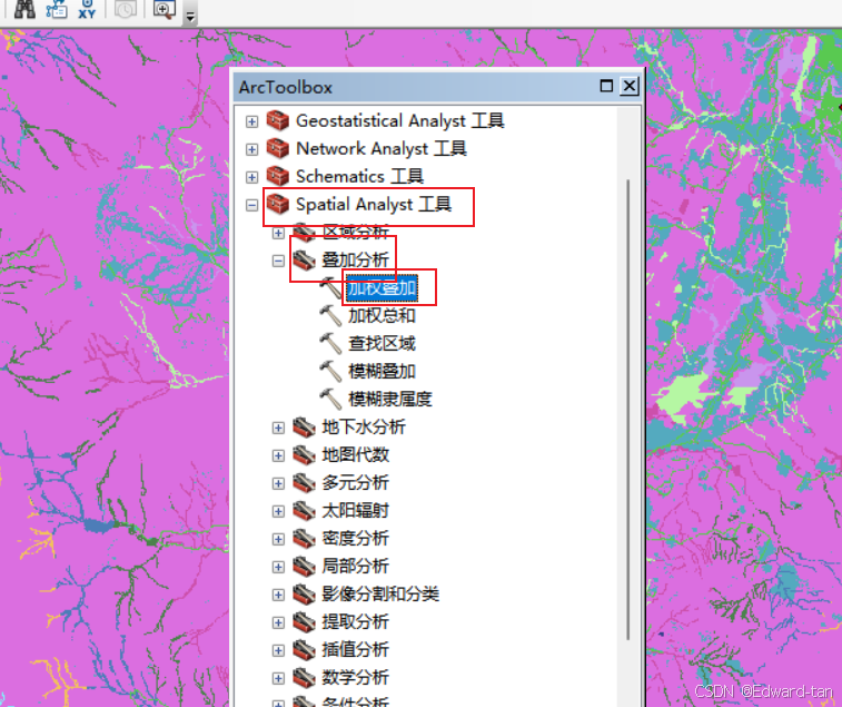 点击ArcToolbox中的【空间分析】-【叠加分析】-【加权叠加】.