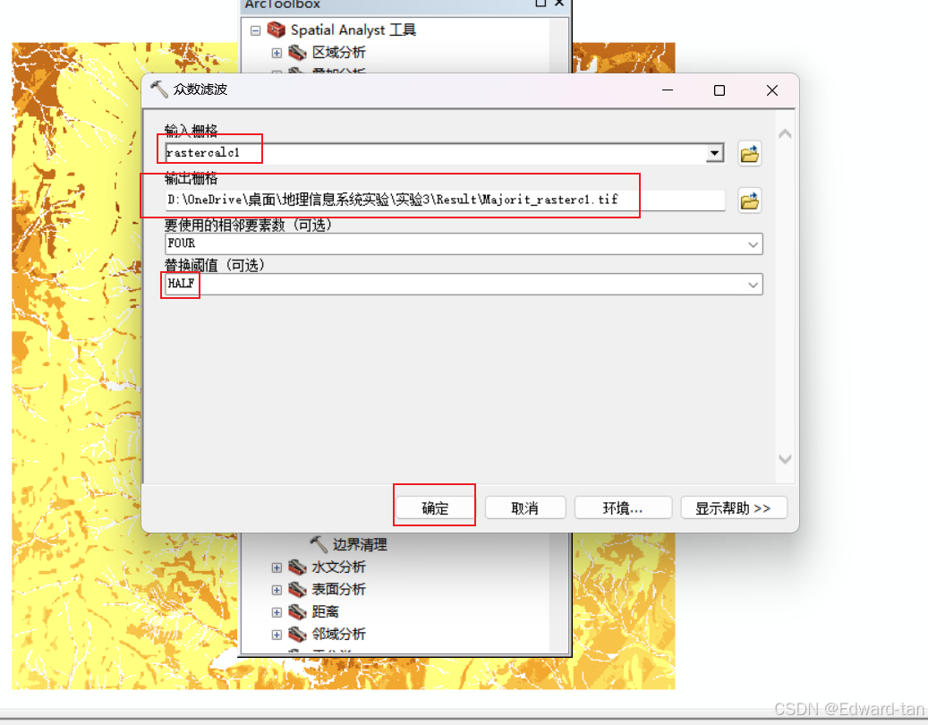 输入rastercalc1文件,设置替换函数为【HALF】,点击确定:
