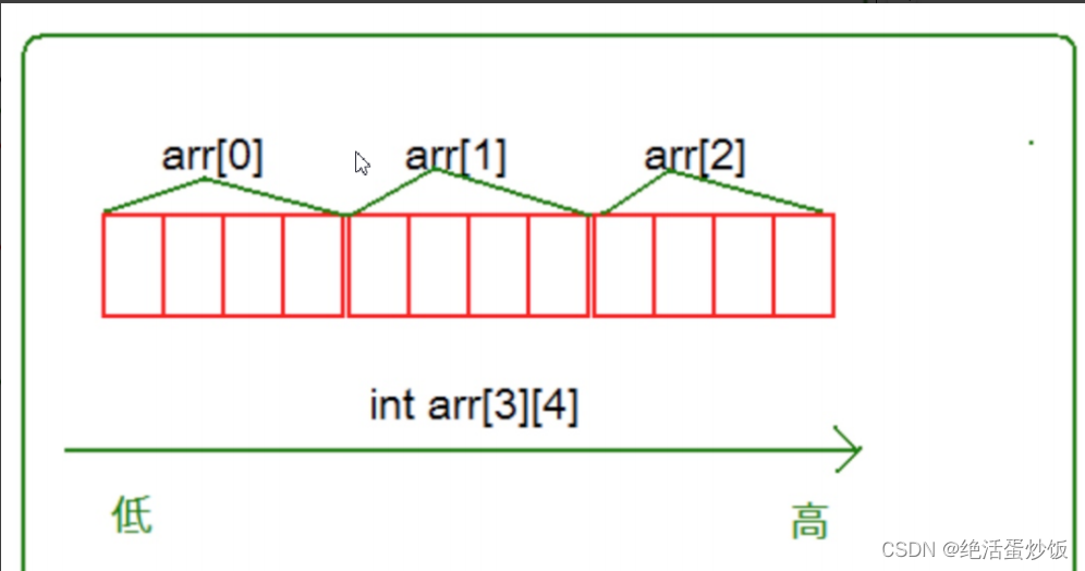 // 数组初始化 int arr [ 3 ][ 4 ] = { 1 , 2 , 3 , 4 }; int arr [ 3 ][ 4 ] = {{ 1 , 2 },{ 4 , 5 }}; int arr [][ 4 ] = {{ 2 , 3 },{ 4 , 5 }}; // 二维数组如果有初始化,行可以省略,列不能省略 //填满会自动换行