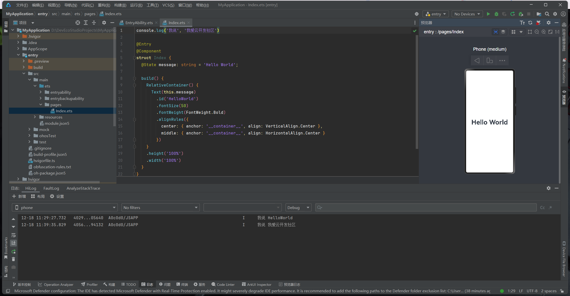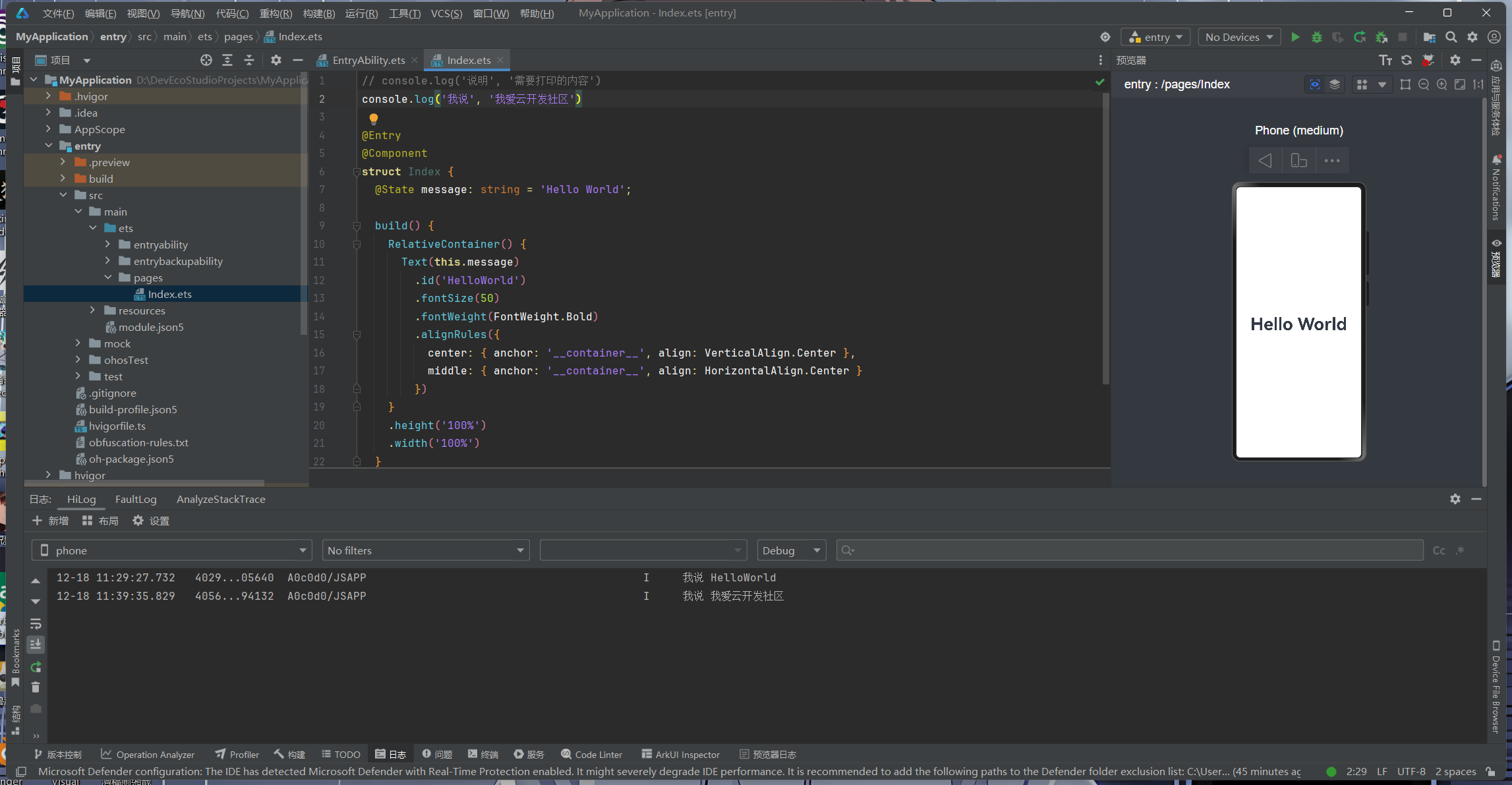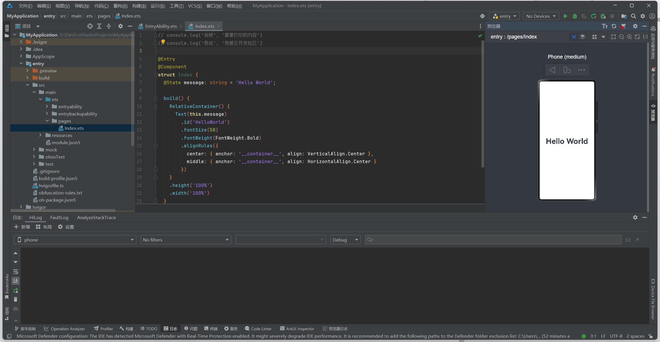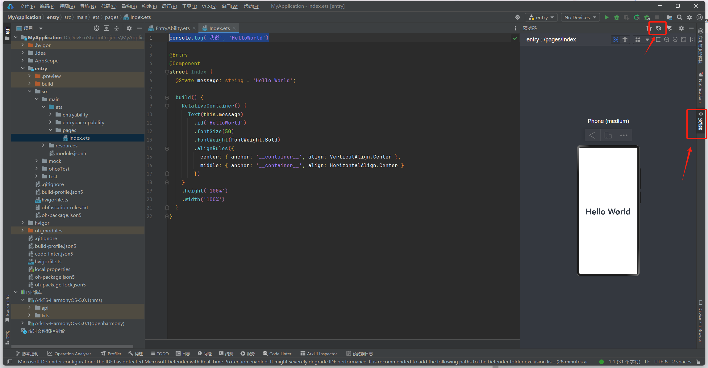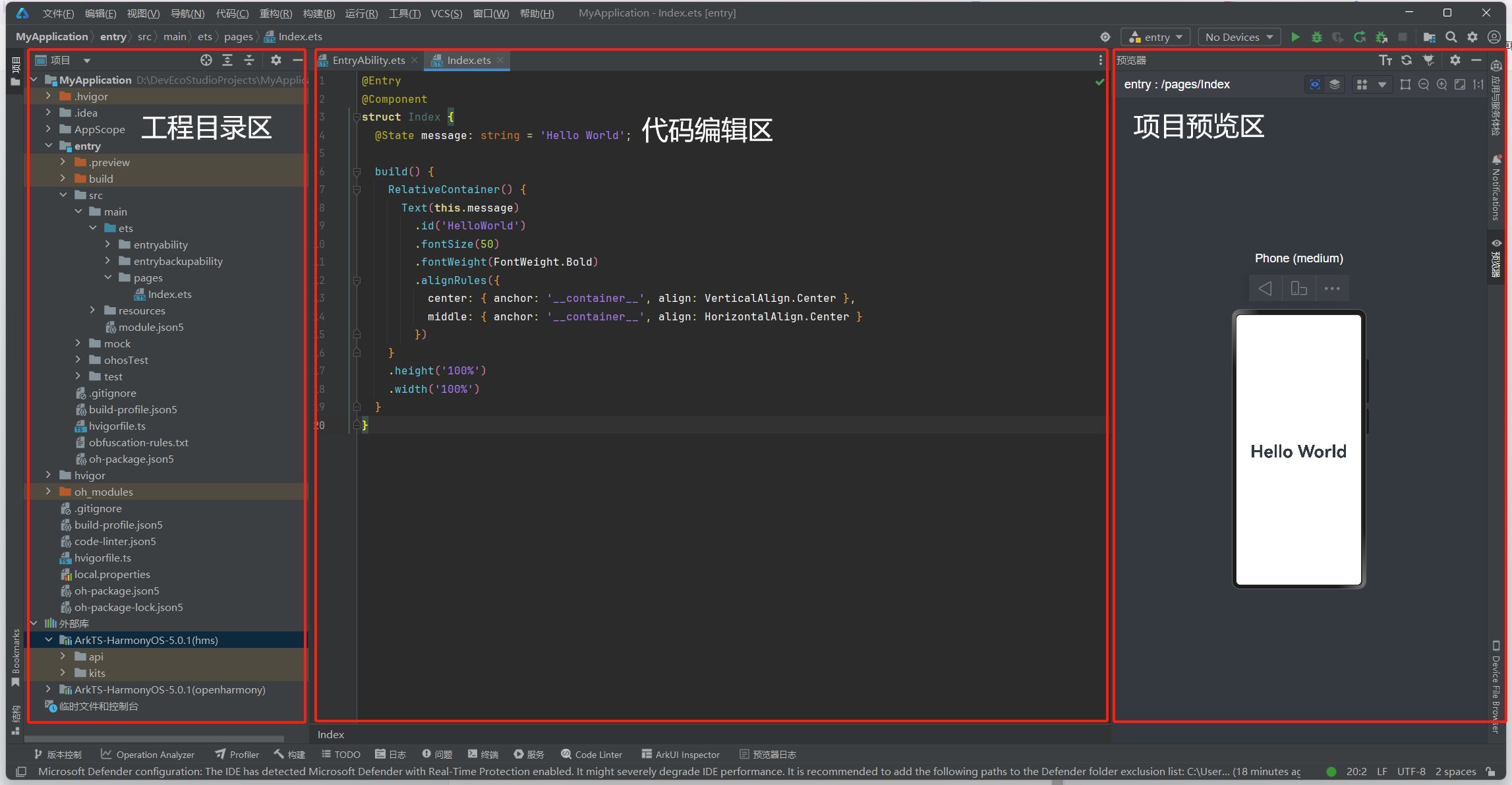 到这一步你的开发之前的工作就已经基本完成了,在这个版本里你无需重新下载SDK,便于开发者使用。这套编辑器使用的是ArkTS编程语言,那我们如何快速入门ArkTS呢?那么就从最简单的HelloWorld开始。