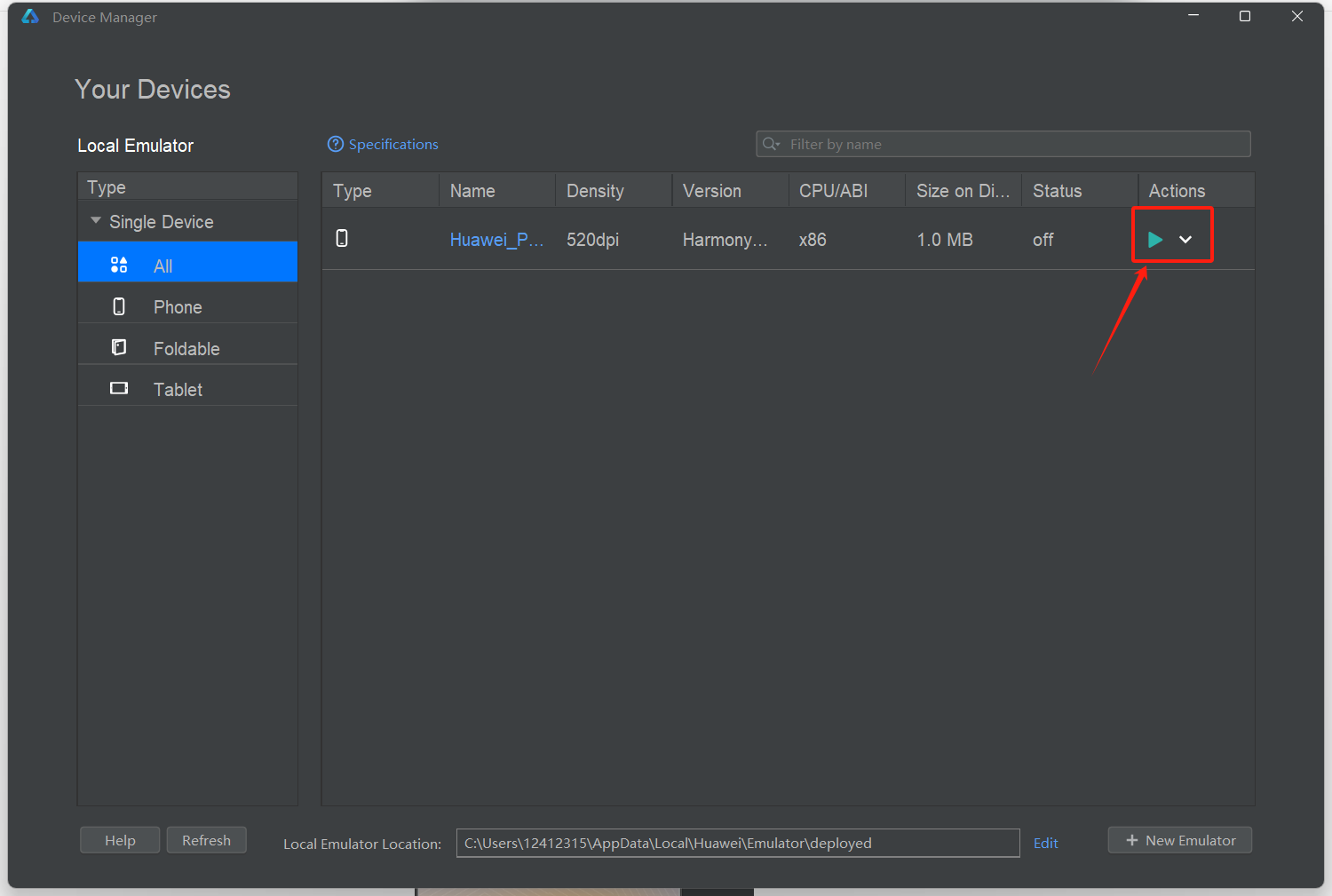 此时,我们已经拥有了一个Hello World的基础代码。该代码构成了我们的初始化界面,它是您开始鸿蒙编程开发之旅的第一步。那么,问题随之而来:代码创建完成后,应如何运行呢?由于本人没有华为手机,因此将通过虚拟机进行演示。