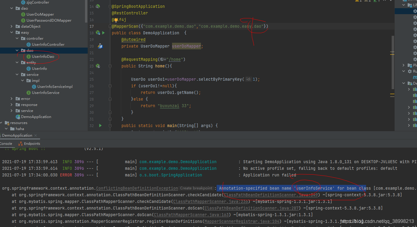 @MapperScan({"com.example.demo.dao","com.example.demo.easy.dao"})