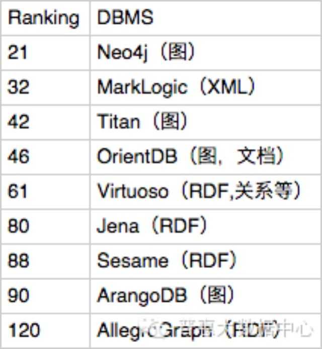 下面的列表表示的是目前比较流行的基于图存储的数据库排名。从这个排名中可以看出neo4j在整个图存储领域里占据着NO.1的地位,而且在RDF领域里Jena还是目前为止最为流行的存储框架。这部分数据来源于 DB-Engines Ranking